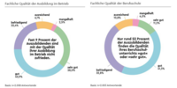 Die Bewertungen zur fachlichen Qualität in der Ausbildung im Betrieb gehen zwischen den einzelnen Berufen weit auseinander. Die angehenden Mechatroniker*innen bewerten sie am besten, es folgen Bankkaufleute und Industriemechaniker*innen. Im Schlussdrittel mit den schlechteren Bewertungen befinden sich beispielsweise Hotelkaufleute, Friseur*innen, Maler*innen und Lackierer*innen. Das Schlusslicht bilden in diesem Jahr erstmals die Anlagenmechaniker*innen.