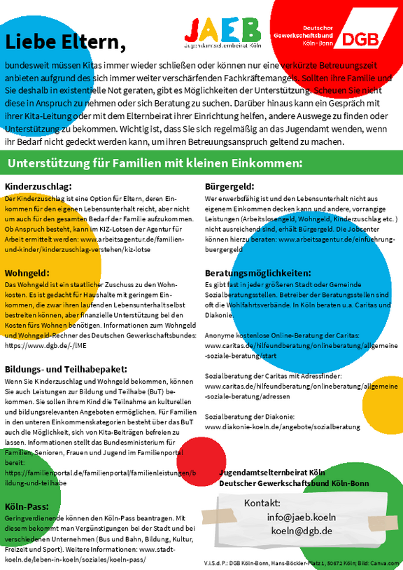 Informationsschreiben online auf https://jaeb.koeln/ und https://koeln-bonn.dgb.de/
