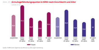 Unser Datenreport zeigt, dass wir in NRW von Gleichstellung in der Arbeitswelt noch weit entfernt sind. Frauen sind im Schnitt besser qualifiziert als Männer, ziehen aber im Berufsleben trotzdem häufig den Kürzeren: Sie verdienen weniger, arbeiten häufiger in Teilzeit oder in Minijobs und haben dadurch ein höheres Armutsrisiko. Das liegt nicht an den Frauen selbst, sondern an widrigen Rahmenbedingungen: Weil Frauen den Großteil der Haus- und Sorgearbeit übernehmen, sind sie stärker auf ein gutes Betreuungssystem und auf familiengerechte Arbeitszeitmodelle angewiesen – und daran mangelt es nach wie vor gewaltig.