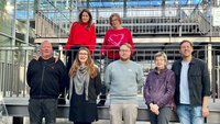 vlnr: Martin Simon (GdP), Rebecca Sirsch (GEW), Patrick Rauch (DGB Jugend), Christel Jünger (GEW), Marc Schneider (Vorsitzender DGB Bochum),