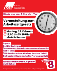 Wir laden euch deshalb zu unserer Online-Veranstaltung „Hände weg vom 8-Stunden-Tag!“ ein.